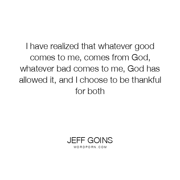 I have realized that whatever good comes to me, comes from God, whatever bad comes to me, God has allowed it, and I choose to be thankful for both
