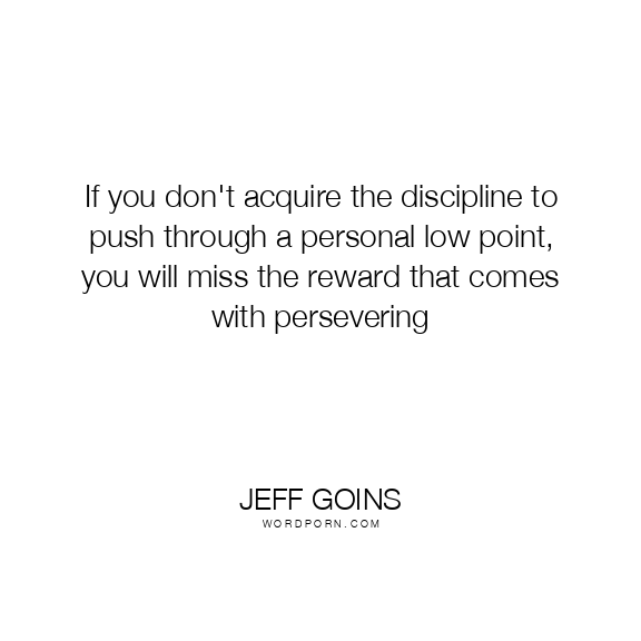 If you don't acquire the discipline to push through a personal low point, you will miss the reward that comes with persevering
