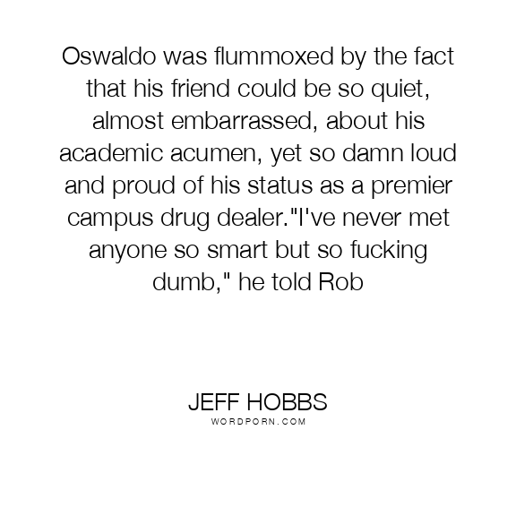 Oswaldo was flummoxed by the fact that his friend could be so quiet, almost embarrassed, about his academic acumen, yet so damn loud and proud of his status as a premier campus drug dealer."I've never met anyone so smart but so fucking dumb," he told Rob