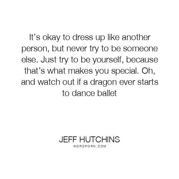 It’s okay to dress up like another person, but never try to be someone else. Just try to be yourself, because that’s what makes you special. Oh, and watch out if a dragon ever starts to dance ballet