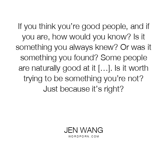 If you think you’re good people, and if you are, how would you know? Is it something you always knew? Or was it something you found? Some people are naturally good at it […]. Is it worth trying to be something you’re not? Just because it’s right?