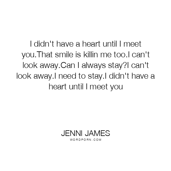 I didn't have a heart until I meet you.That smile is killin me too.I can't look away.Can I always stay?I can't look away.I need to stay.I didn't have a heart until I meet you