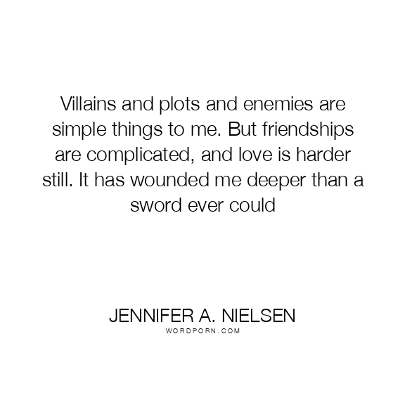 Villains and plots and enemies are simple things to me. But friendships are complicated, and love is harder still. It has wounded me deeper than a sword ever could