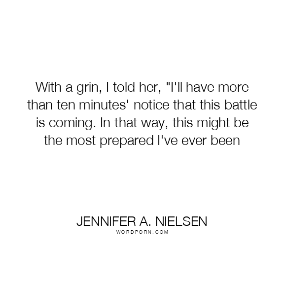 With a grin, I told her, "I'll have more than ten minutes' notice that this battle is coming. In that way, this might be the most prepared I've ever been