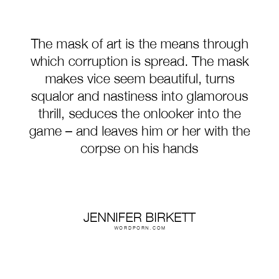 The mask of art is the means through which corruption is spread. The mask makes vice seem beautiful, turns squalor and nastiness into glamorous thrill, seduces the onlooker into the game – and leaves him or her with the corpse on his hands