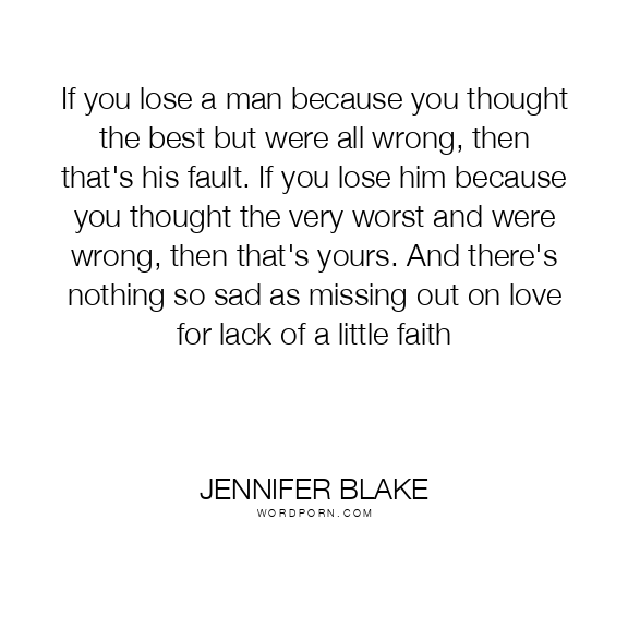 If you lose a man because you thought the best but were all wrong, then that's his fault. If you lose him because you thought the very worst and were wrong, then that's yours. And there's nothing so sad as missing out on love for lack of a little faith