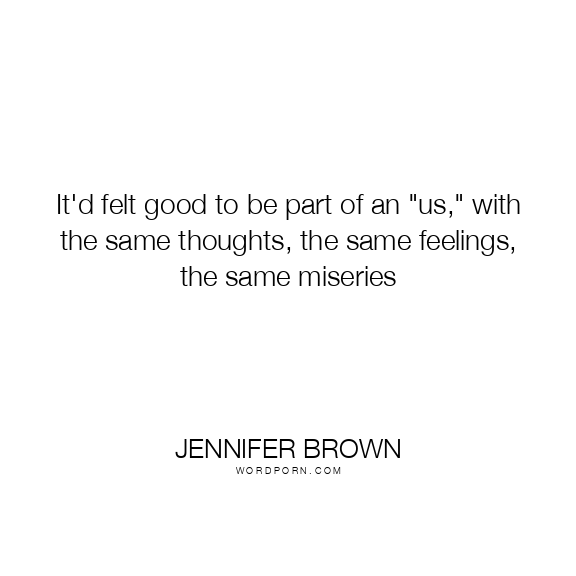 It'd felt good to be part of an "us," with the same thoughts, the same feelings, the same miseries