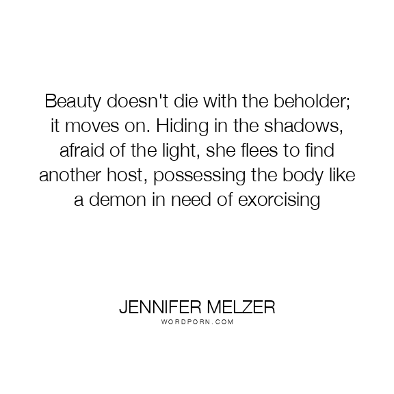 Beauty doesn't die with the beholder; it moves on. Hiding in the shadows, afraid of the light, she flees to find another host, possessing the body like a demon in need of exorcising