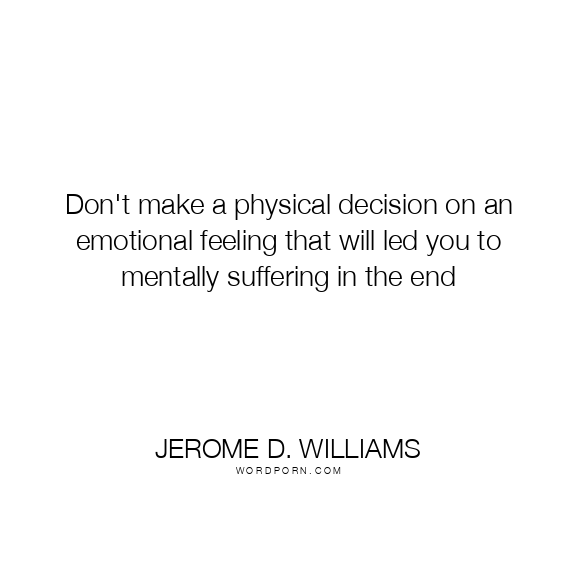 Don't make a physical decision on an emotional feeling that will led you to mentally suffering in the end
