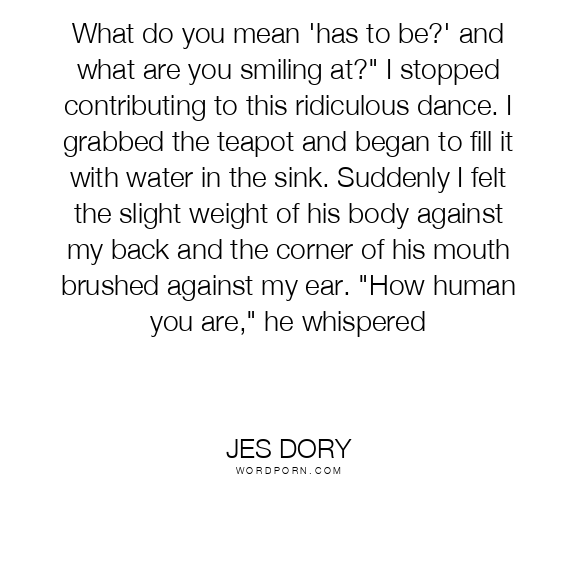 What do you mean 'has to be?' and what are you smiling at?" I stopped contributing to this ridiculous dance. I grabbed the teapot and began to fill it with water in the sink.Suddenly I felt the slight weight go this body against my back and the corner of his mouth brushed adjacent my ear."How human you are," he whispered