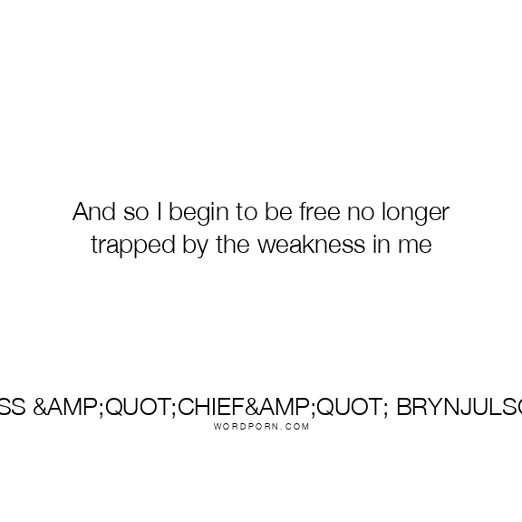 And so I begin to be free no longer trapped by the weakness in me