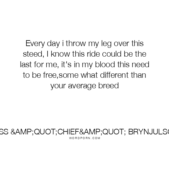 Every day i throw my leg over this steed, I know this ride could be the last for me, it's in my blood this need to be free,some what different than your average breed