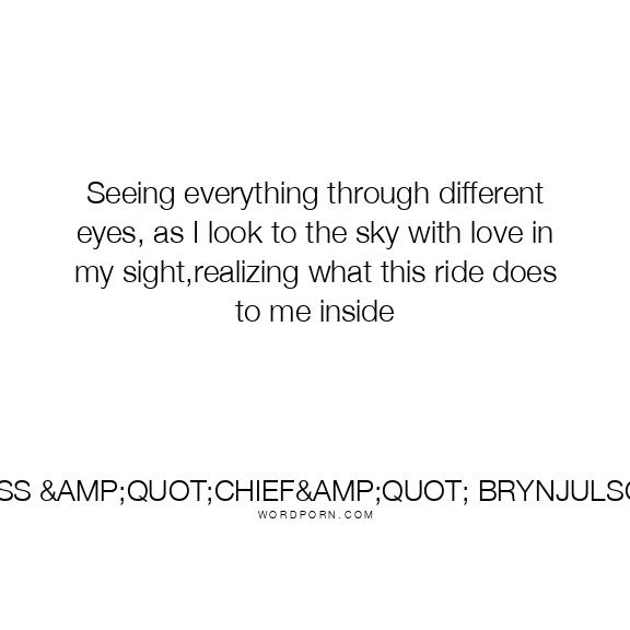 Seeing everything through different eyes, as I look to the sky with love in my sight,realizing what this ride does to me inside