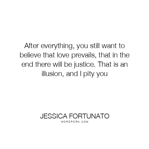 After everything, you still want to believe that love prevails, that in the end there will be justice. That is an illusion, and I pity you
