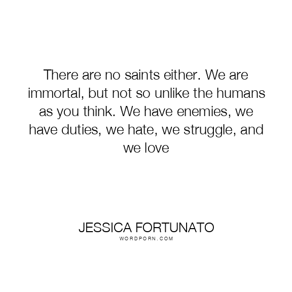 There are no saints either. We are immortal, but not so unlike the humans as you think. We have enemies, we have duties, we hate, we struggle, and we love