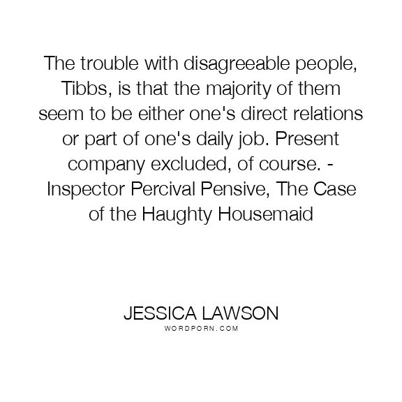 The trouble with disagreeable people, Tibbs, is that the majority of them seem to be either one's direct relations or part of one's daily job. Present company excluded, of course. - Inspector Percival Pensive, The Case of the Haughty Housemaid