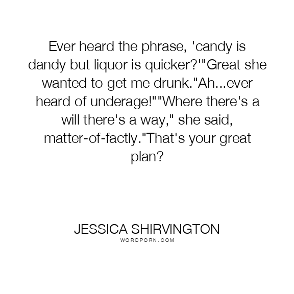 Ever heard the phrase, 'candy is dandy but liquor is quicker?'"Great she wanted to get me drunk."Ah...ever heard of underage!""Where there's a will there's a way," she said, matter-of-factly."That's your great plan?