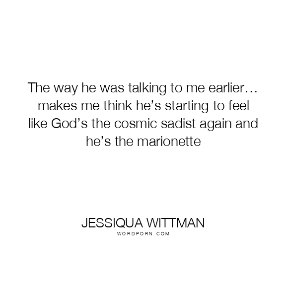 The way he was talking to me earlier… makes me think he’s starting to feel like God’s the cosmic sadist again and he’s the marionette