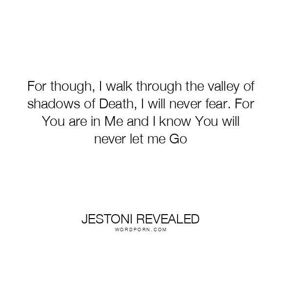 For though, I walk through the valley of shadows of Death, I will never fear. For You are in Me and I know You will never let me Go