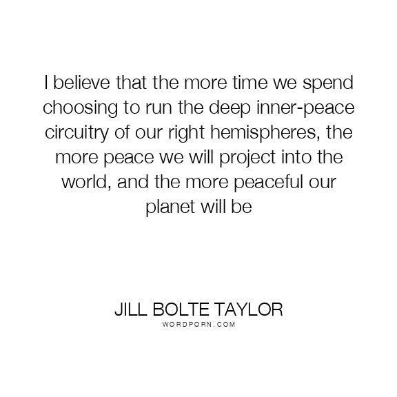 I believe that the more time we spend choosing to run the deep inner-peace circuitry of our right hemispheres, the more peace we will project into the world, and the more peaceful our planet will be