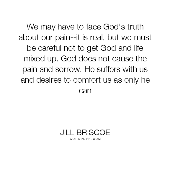 We may have to face God's truth about our pain--it is real, but we must be careful not to get God and life mixed up. God does not cause the pain and sorrow. He suffers with us and desires to comfort us as only he can