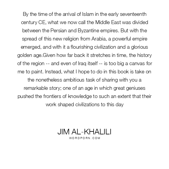 By the time of the arrival of Islam in the early seventeenth century CE, what we now call the Middle East was divided between the Persian and Byzantine empires. But with the spread of this new religion from Arabia, a powerful empire emerged, and with it a flourishing civilization and a glorious golden age.Given how far back it stretches in time, the history of the region -- and even of Iraq itself -- is too big a canvas for me to paint. Instead, what I hope to do in this book is take on the nonetheless ambitious task of sharing with you a remarkable story; one of an age in which great geniuses pushed the frontiers of knowledge to such an extent that their work shaped civilizations to this day