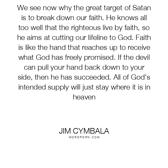 We see now why the great target of Satan is to break down our faith. He knows all too well that the righteous live by faith, so he aims at cutting our lifeline to God. Faith is like the hand that reaches up to receive what God has freely promised. If the devil can pull your hand back down to your side, then he has succeeded. All of God's intended supply will just stay where it is in heaven