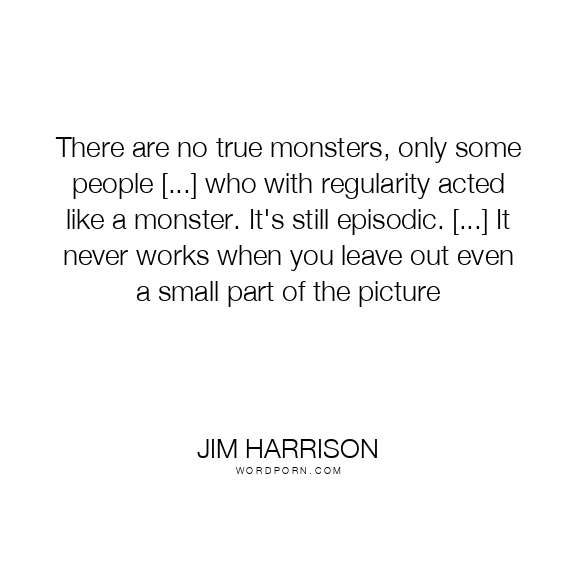 There are no true monsters, only some people [...] who with regularity acted like a monster. It's still episodic. [...] It never works when you leave out even a small part of the picture