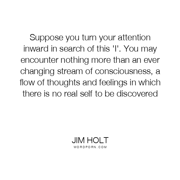 Suppose you turn your attention inward in search of this 'I'. You may encounter nothing more than an ever changing stream of consciousness, a flow of thoughts and feelings in which there is no real self to be discovered