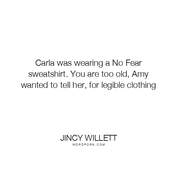 Carla was wearing a No Fear sweatshirt. You are too old, Amy wanted to tell her, for legible clothing