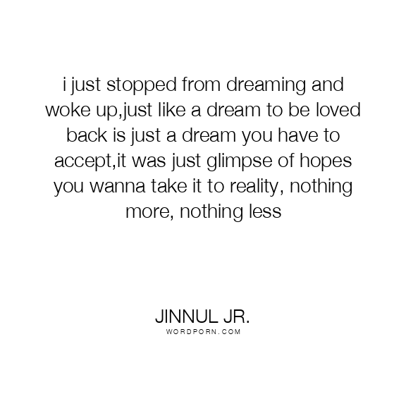 i just stopped from dreaming and woke up,just like a dream to be loved back is just a dream you have to accept,it was just glimpse of hopes you wanna take it to reality, nothing more, nothing less