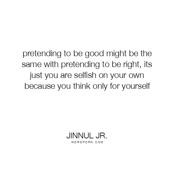pretending to be good might be the same with pretending to be right, its just you are selfish on your own because you think only for yourself