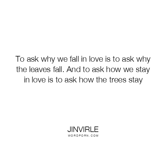To ask why we fall in love is to ask why the leaves fall. And to ask how we stay in love is to ask how the trees stay