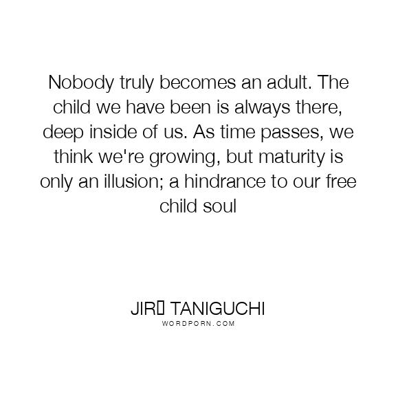 Nobody truly becomes an adult. The child we have been is always there, deep inside of us. As time passes, we think we're growing, but maturity is only an illusion; a hindrance to our free child soul