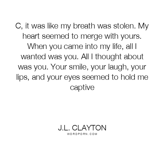 C, it was like my breath was stolen. My heart seemed to merge with yours. When you came into my life, all I wanted was you. All I thought about was you. Your smile, your laugh, your lips, and your eyes seemed to hold me captive