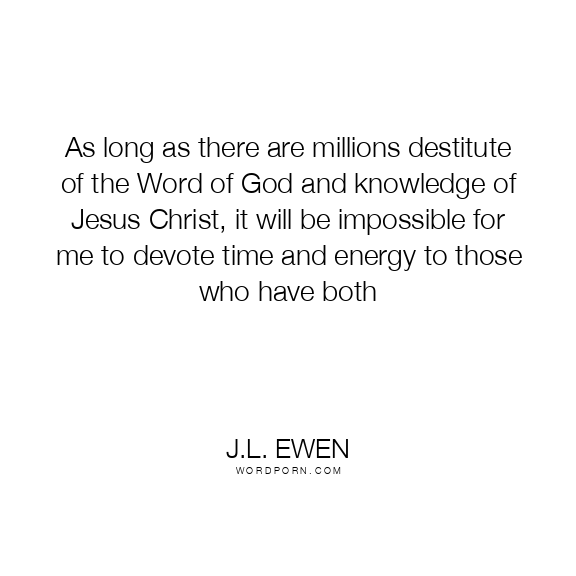As long as there are millions destitute of the Word of God and knowledge of Jesus Christ, it will be impossible for me to devote time and energy to those who have both
