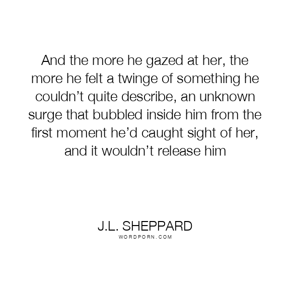 And the more he gazed at her, the more he felt a twinge of something he couldn’t quite describe, an unknown surge that bubbled inside him from the first moment he’d caught sight of her, and it wouldn’t release him