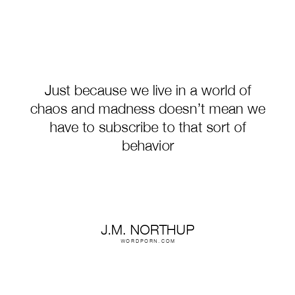 Just because we live in a world of chaos and madness doesn’t mean we have to subscribe to that sort of behavior