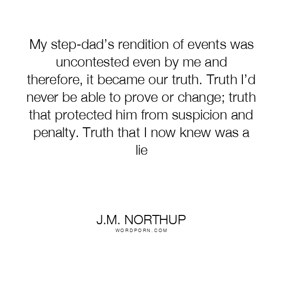 My step-dad’s rendition of events was uncontested even by me and therefore, it became our truth. Truth I’d never be able to prove or change; truth that protected him from suspicion and penalty. Truth that I now knew was a lie