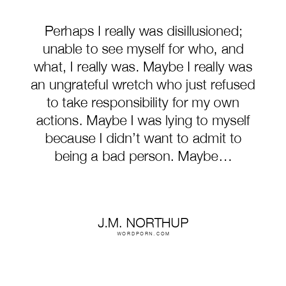 Perhaps I really was disillusioned; unable to see myself for who, and what, I really was. Maybe I really was an ungrateful wretch who just refused to take responsibility for my own actions. Maybe I was lying to myself because I didn’t want to admit to being a bad person. Maybe…