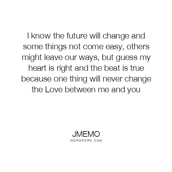I know the future will change and some things not come easy, others might leave our ways, but guess my heart is right and the beat is true because one thing will never change the Love between me and you