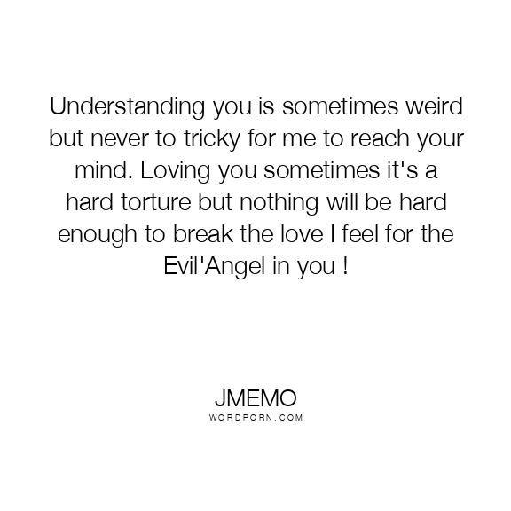 Understanding you is sometimes weird but never to tricky for me to reach your mind. Loving you sometimes it's a hard torture but nothing will be hard enough to break the love I feel for the Evil'Angel in you !