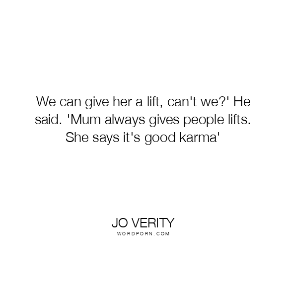 Copy Image We can give her a lift, can't we?' He said. 'Mum always gives people lifts. She says it's good karma' Moms Typewriter A A SAVE THIS IMAGE
