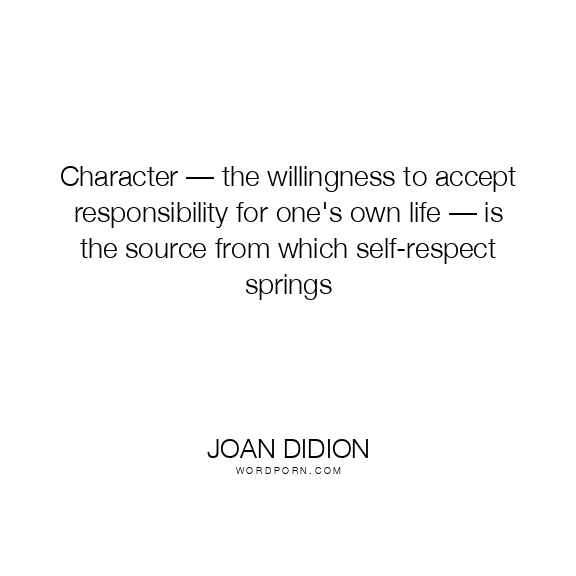 Character — the willingness to accept responsibility for one's own life — is the source from which self-respect springs