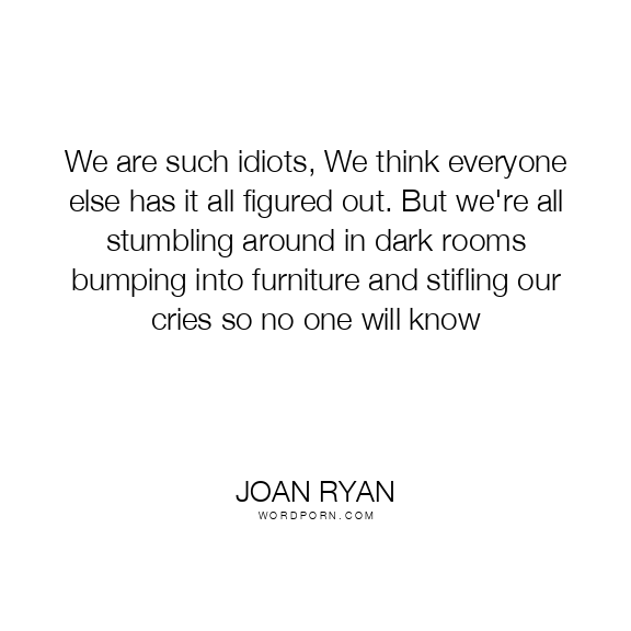 We are such idiots, We think everyone else has it all figured out. But we're all stumbling around in dark rooms bumping into furniture and stifling our cries so no one will know