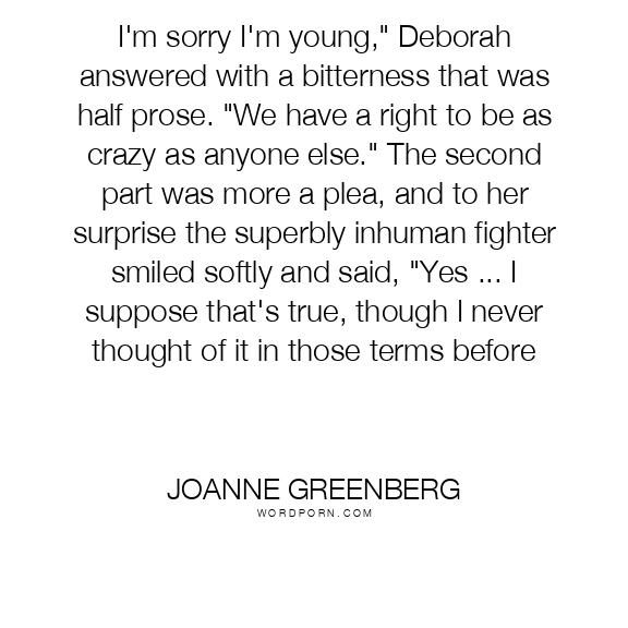 Joanne Greenberg quote. I'm sorry I'm young,