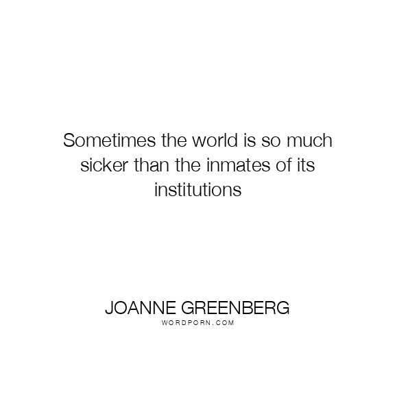 Joanne Greenberg quote. Sometimes the world is so much sicker than the inmates of its institutions