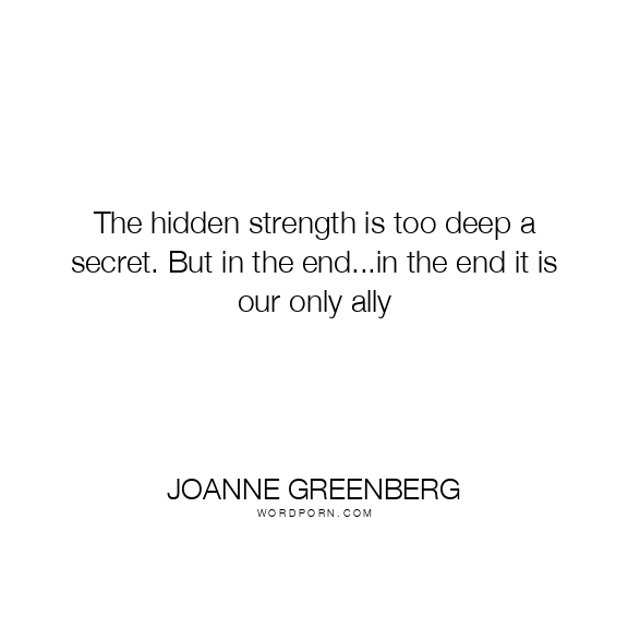 Joanne Greenberg quote. The hidden strength is too deep a secret. But in the end...in the end it is our only ally