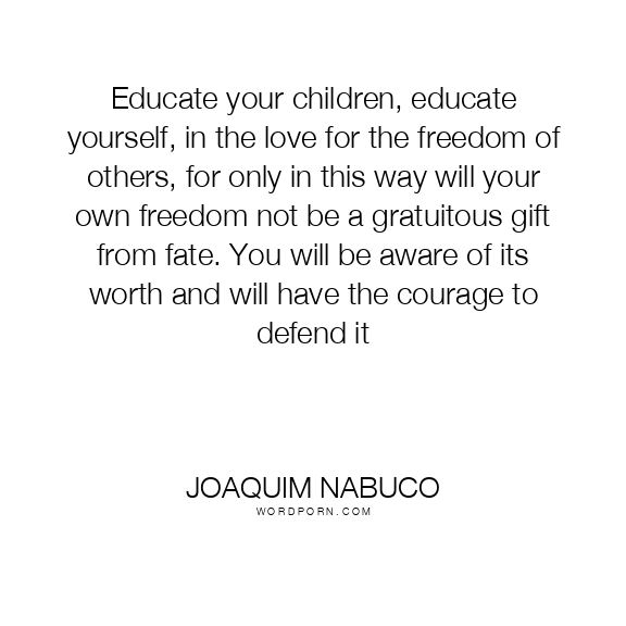Educate your children, educate yourself, in the love for the freedom of others, for only in this way will your own freedom not be a gratuitous gift from fate. You will be aware of its worth and will have the courage to defend it