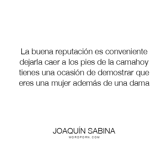 La buena reputación es conveniente dejarla caer a los pies de la camahoy tienes una ocasión de demostrar que eres una mujer además de una dama
